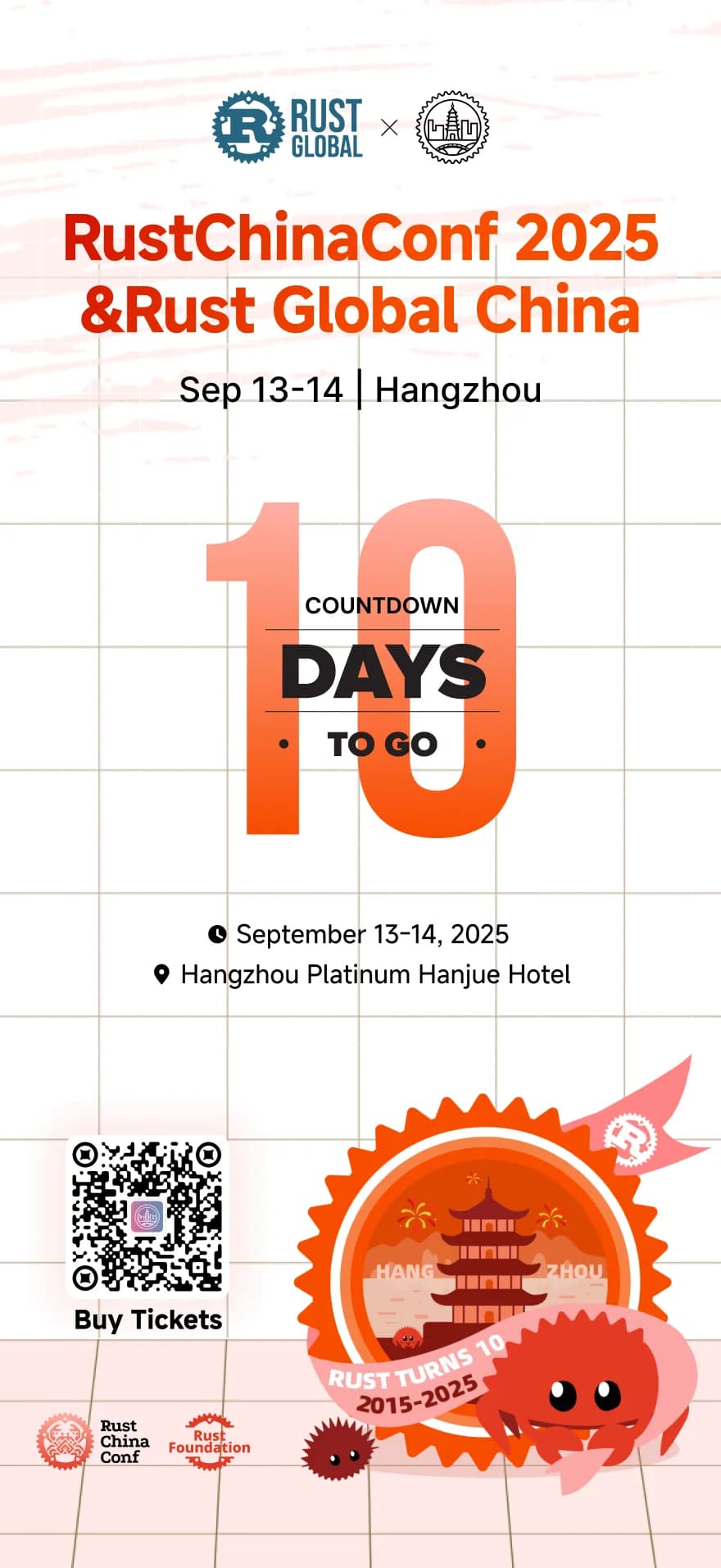 倒计时10天! RustChinaConf 2025 x Rust Global China 将于9 月 13 日启幕!