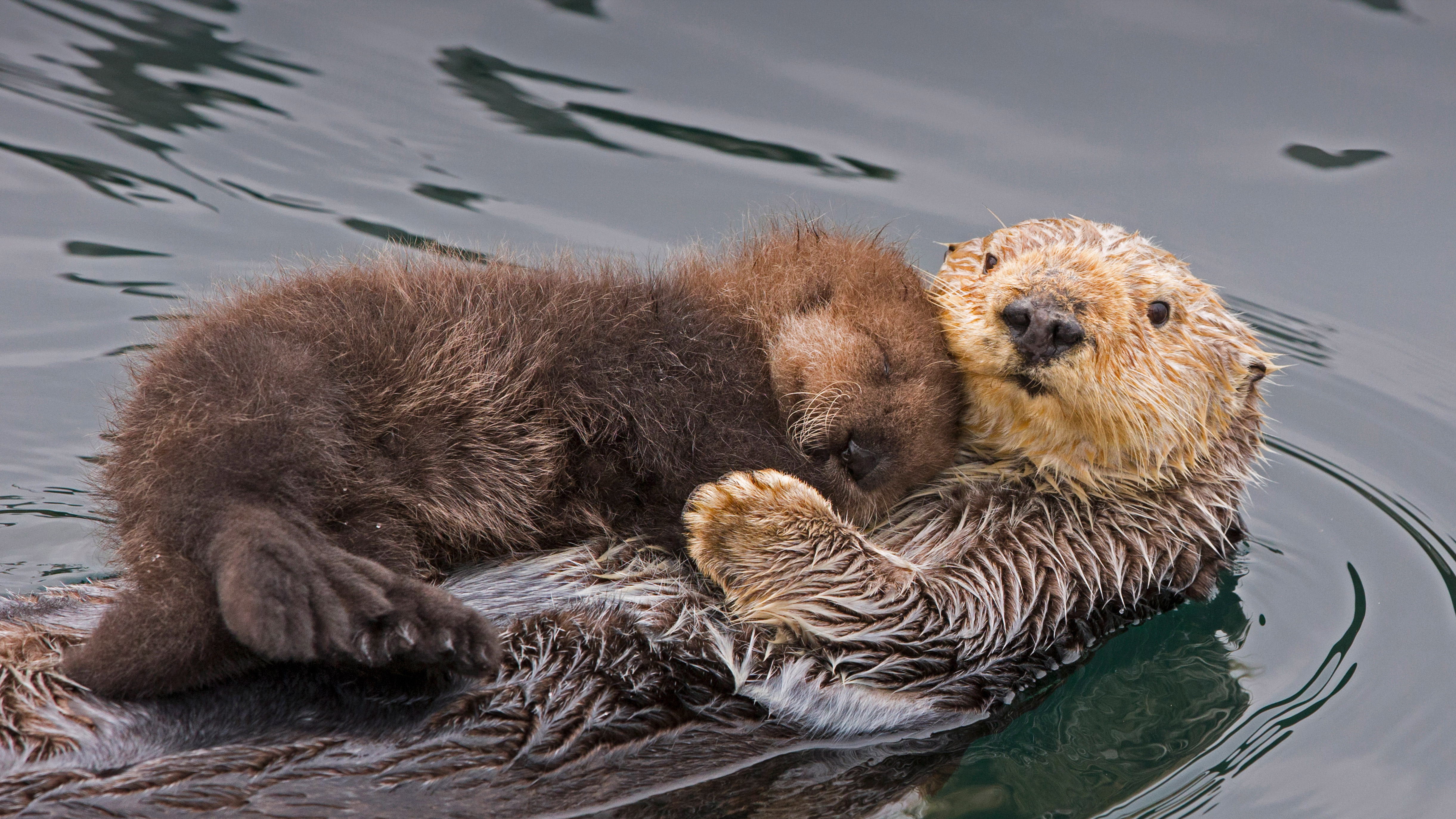海獭妈妈和新生的幼崽-加利福尼亚州蒙特雷湾