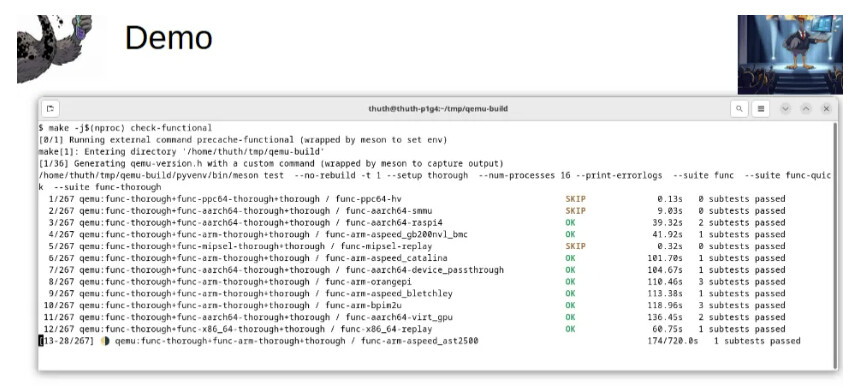 QEMU 团队从 “代码迁移”“本地调试”“CI 集成” 三个维度进行了全面验证,确保新框架能无缝替代 Avocado,同时解决历史痛点。