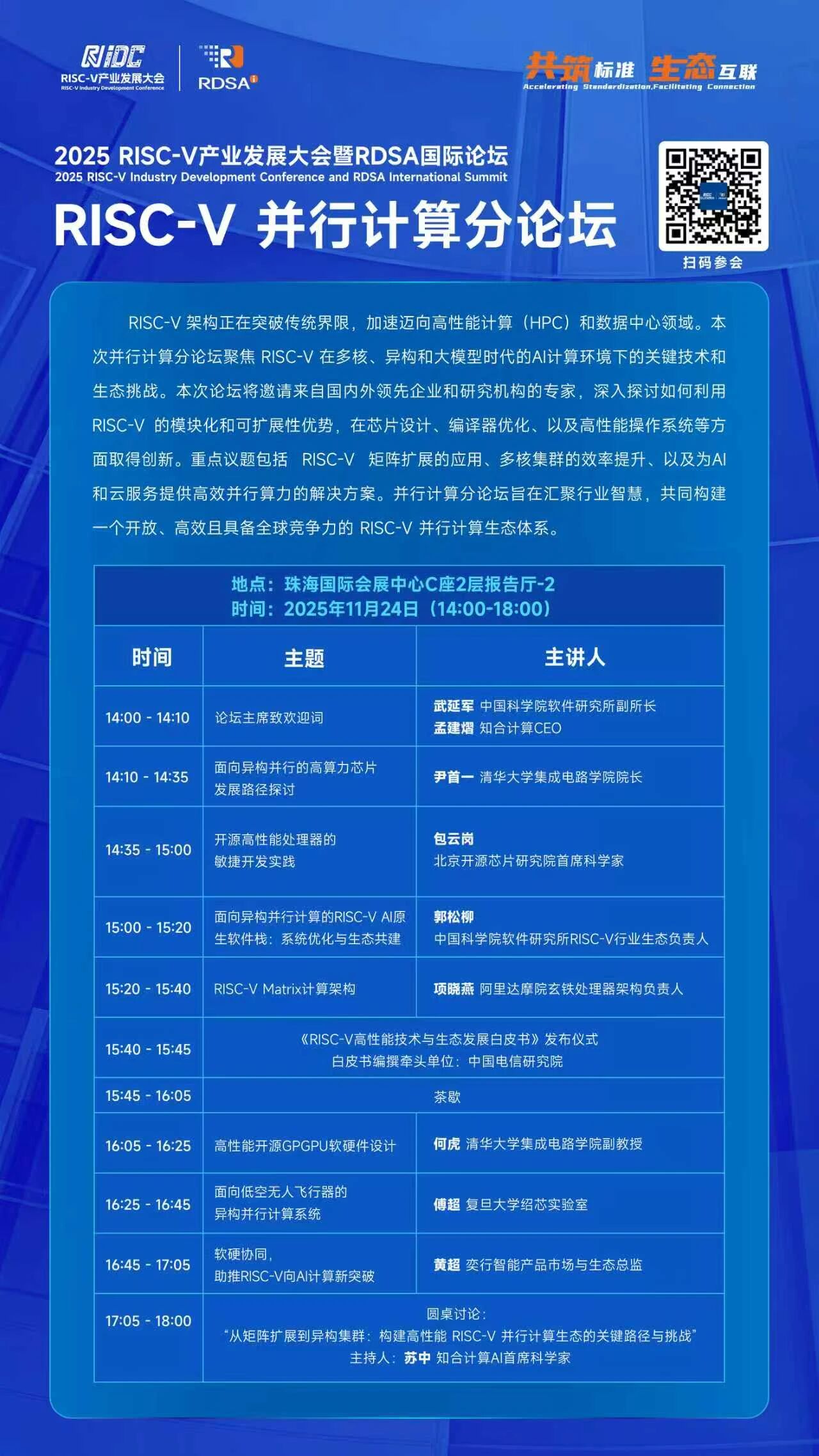 本次分论坛聚焦 RISC-V 在并行计算领域的最新进展和解决方案,主题涵盖: