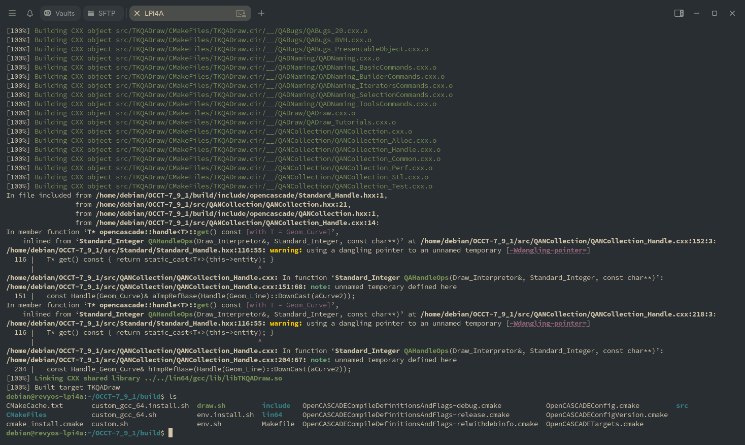 OCCT 使用标准的 CMake 流程,过程比较顺利。# 获取源码并进入 mkdir build && cd build cmake .. make -j$(nproc) sudo make installsudo make install会将 OCCT 的头文件和库安装到系统目录,方便后续其他程序(如 NETGEN)找到它。