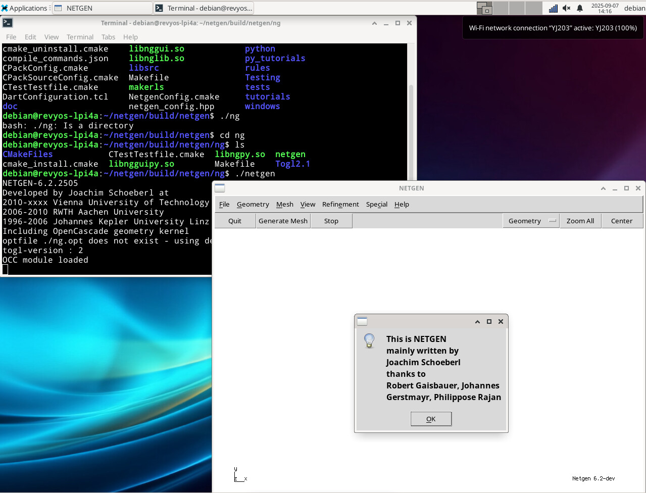 OpenCASCADE (OCCT) 是一个强大的开源 CAD 内核,而 NETGEN 则是一款优秀的网格生成器,并且可以选择使用 OCCT 作为其几何内核。在 RevyOS 上,我们需要先从源码编译 OCCT,然后再编译 NETGEN 并链接到我们自己编译的 OCCT。