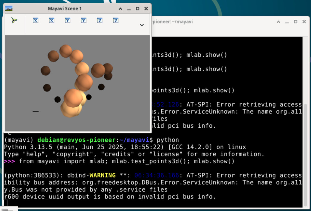 MayaVi 是一款基于 VTK 的科学数据可视化 Python 库。在 RISC-V 平台上,其关键依赖 VTK 和 wxPython 都没有预编译的 wheel 包,直接 pip install 会失败。我们的策略是:使用 apt 安装最复杂的原生依赖 VTK,然后利用 pip 在一个特殊的虚拟环境中安装 MayaVi 及其余 Python 依赖。