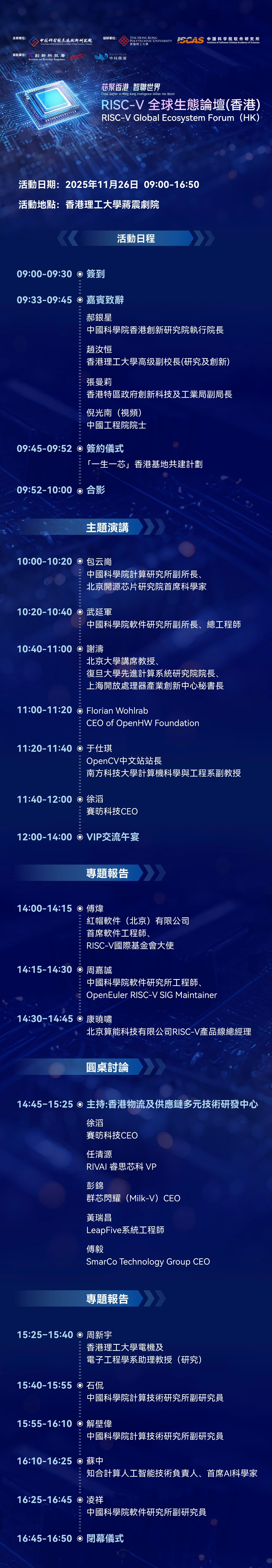 中国科学院香港创新研究院联合香港理工大学、中国科学院软件研究所共同举办的“RISC-V全球生态论坛(香港)” 定于 2025 年 11 月 26 日上午 9:30 在香港理工大学启幕。