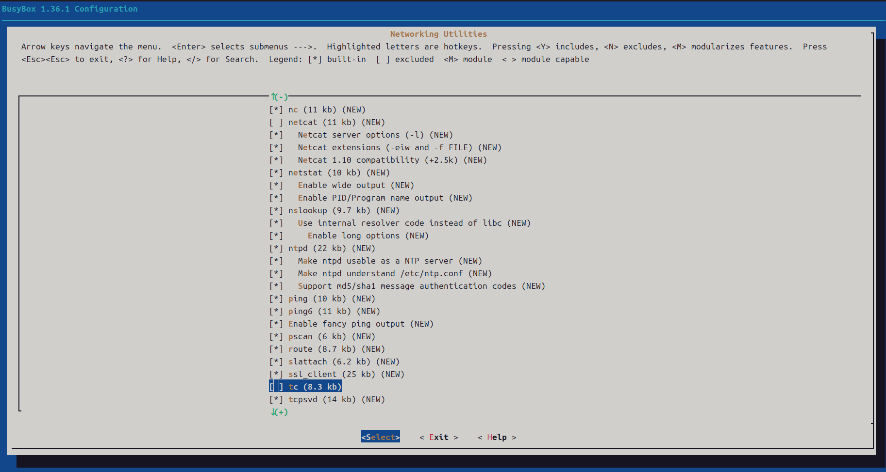 如果发生error:networking/tc.c:255:16: error: 'TCA_CBQ_LSSOPT' 禁用 tc 组件: