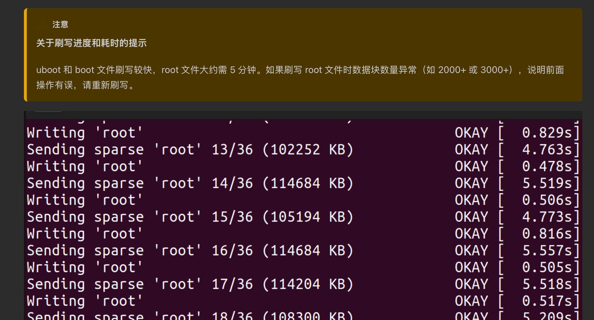 手动刷写三千多个分段是不对劲的,说明走的是 BROM,或者 fastboot flash ram 之后没有 fastboot reboot 重启就直接开始刷写 bootfs/rootfs 了。