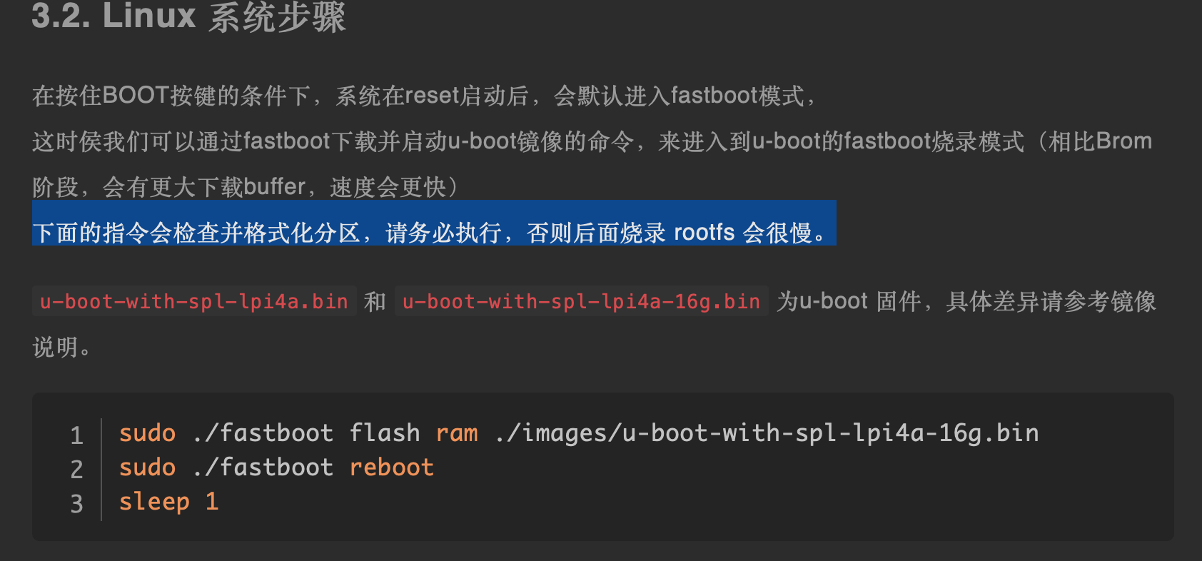 这时侯我们可以通过fastboot下载并启动u-boot镜像的命令,来进入到u-boot的fastboot烧录模式(相比Brom阶段,会有更大下载buffer,速度会更快)